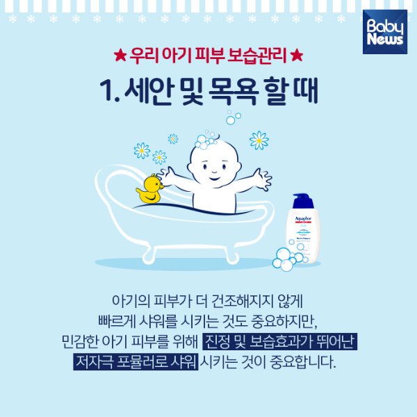 이 이미지는 아기가 목욕을 하고 있는 모습으로, 실내 환경 관리의 중요성을 강조하고 있어요.