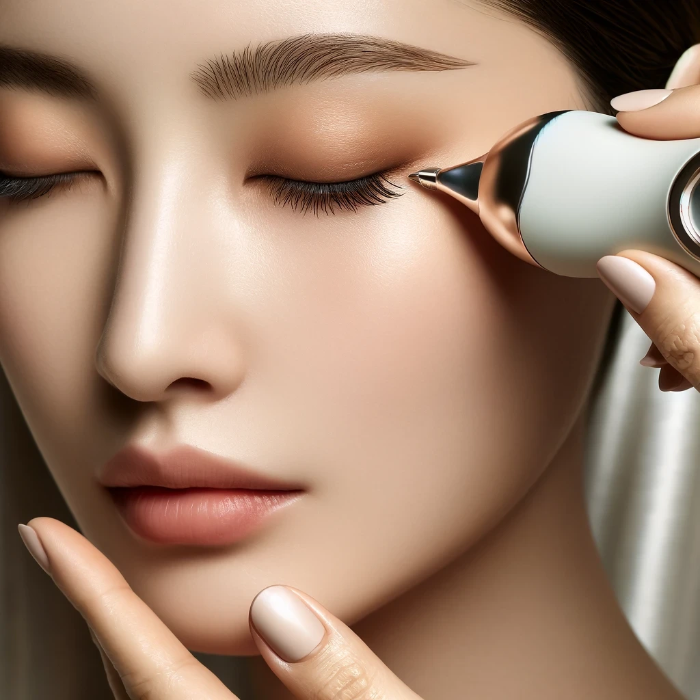 스킨케어 도구를 사용한 모습이에요. 피부에 좋은 영향을 줄 수 있어요.