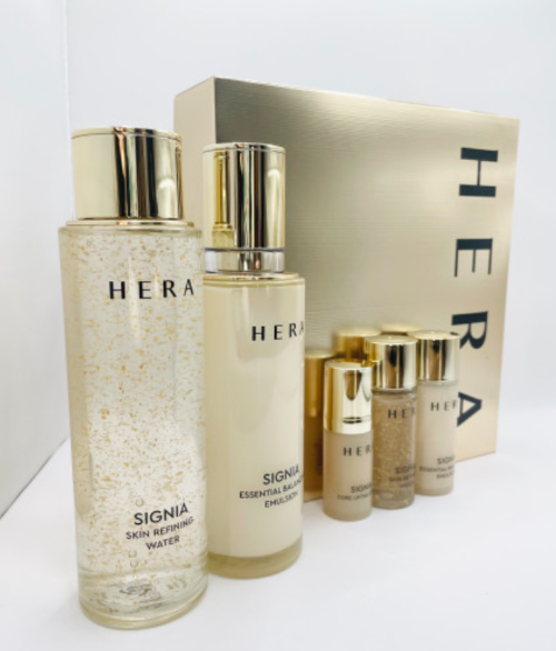 HERA의 SIGNIA 라인은 피부 재생과 탄력 개선에 탁월한 효과가 있어요. 특히 SIGNIA Skin Refining Water와 Essential Balancing Emulsion은 미세한 입자로 피부를 촉촉하게 만들어줘요.