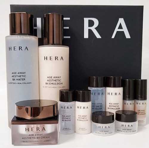 HERA의 Age Away Aesthetic BX 라인은 노화 방지에 효과적이며, 주름 개선에 도움을 주는 제품들로 구성되어 있어요.