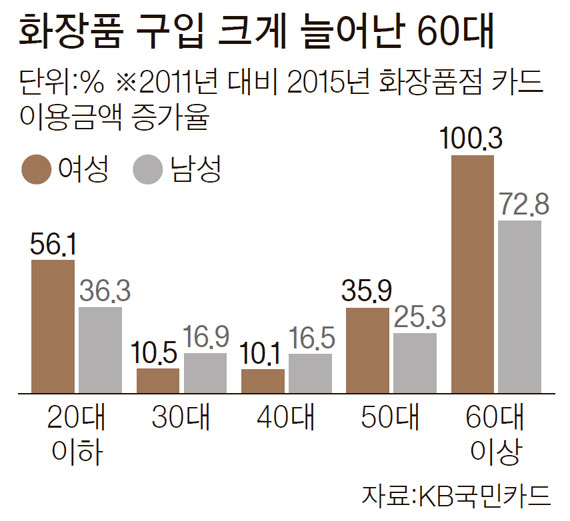 2011년부터 2015년까지의 통계에 따르면, 60대 남성의 화장품 소비는 무려 100.3% 증가하였습니다. 이는 다른 연령대에 비해 가장 높은 증가율을 기록한 것입니다. 특히, 60대 남성들은 평균적으로 연간 22만3000원의 화장품을 구매하고 있으며, 이는 여성보다도 높은 수치입니다. 이러한 소비 증가의 배경에는 남성들의 외모에 대한 관심이 높아진 것과 더불어, 다양한 화장품 브랜드들이 남성을 위한 제품을 출시하고 있다는 점이 있습니다.